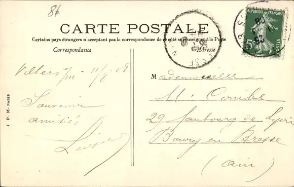 Zustand, siehe Scan, gelaufen, 1908 - ca 14 cm X 9 cm