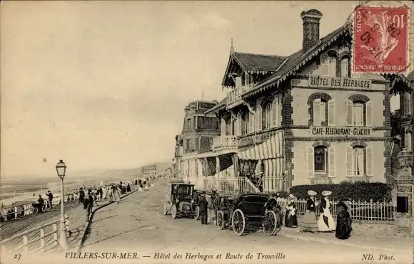 Ak Villers sur Mer Calvados, Hotel des Herbages, Route de Trouville