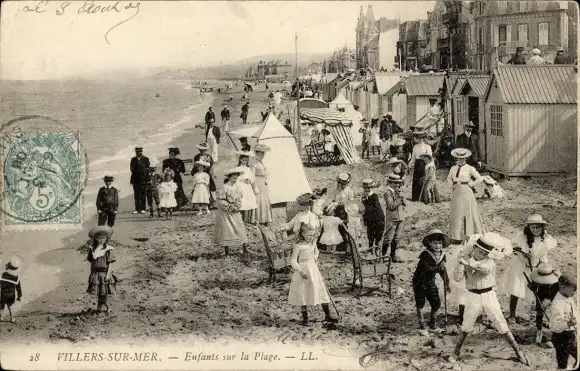 Ak Villers sur Mer Calvados, Kinder am Strand