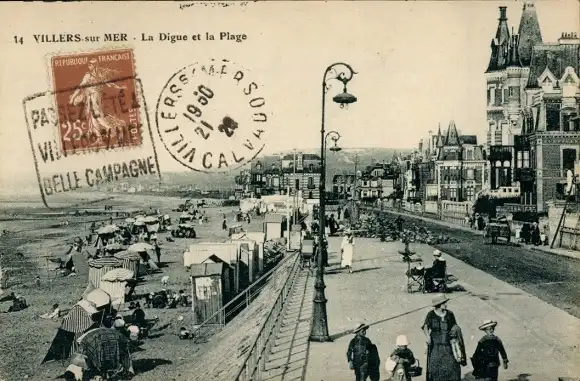 Ak Villers sur Mer Calvados, La Digue, Strand