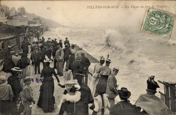 Ak Villers sur Mer Calvados, La Digue un jour de tempete