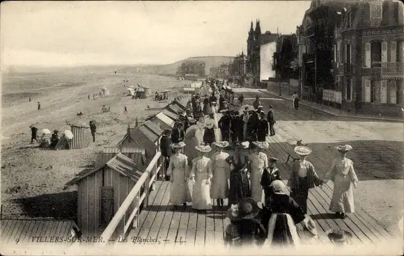 Ak Villers sur Mer Calvados, Les Planches, Spaziergänger