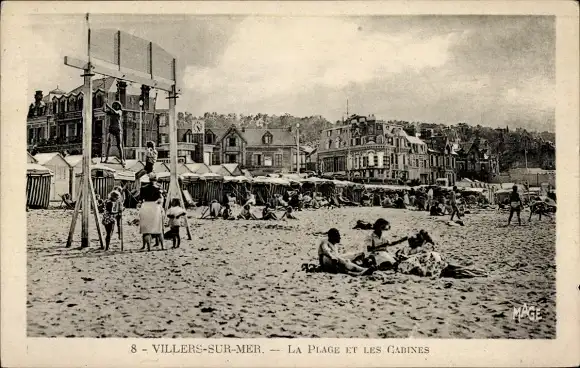 Ak Villers sur Mer Calvados, Plage, Cabines