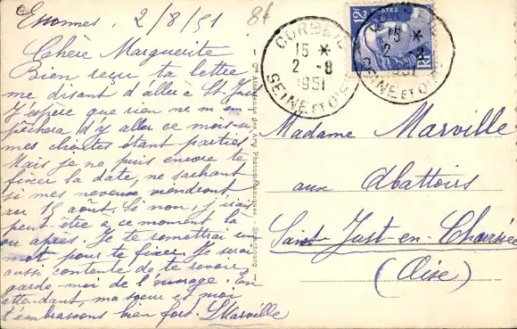 Zustand, siehe Scan, gelaufen, 1951 - ca 14 cm X 9 cm