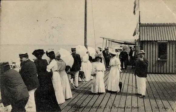 Ak Villers sur Mer Calvados, Terrasse des Bains
