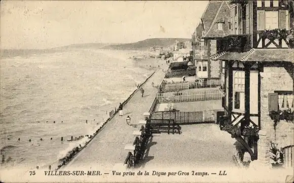 Ak Villers sur Mer Calvados, Vue prise de la Digue par Gros Temps