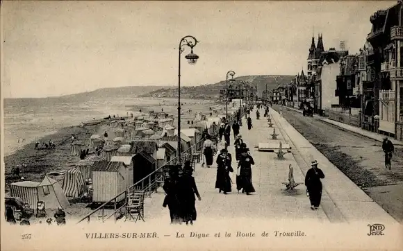 Ak Villers sur Mer Calvados, la Digue, Route de Trouville