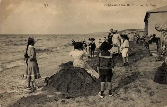 Ak Villers sur Mer Calvados, sur la Plage, Kinder