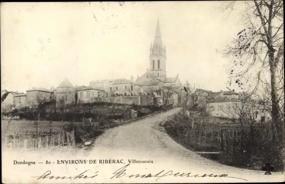 Ak Villetoureix Dordogne, Ortsansicht, Kirche