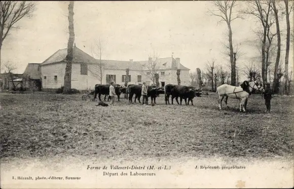 Ak Villevert Distre Maine et Loire, Ferme, Depart des Laboureurs
