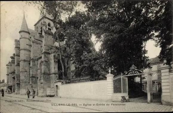 Ak Villiers le Bel Val d'Oise, Eglise et Entrée du Pensionnat