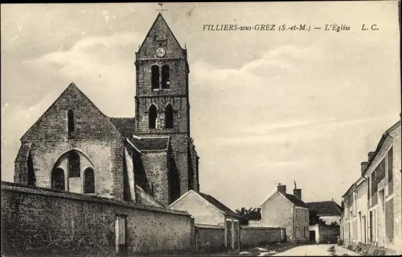 Ak Villiers sous Grez Seine-et-Marne, L'Église, vue générale