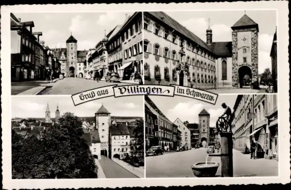 Ak Villingen im Schwarzwald, Wasserbrunnen, Tor