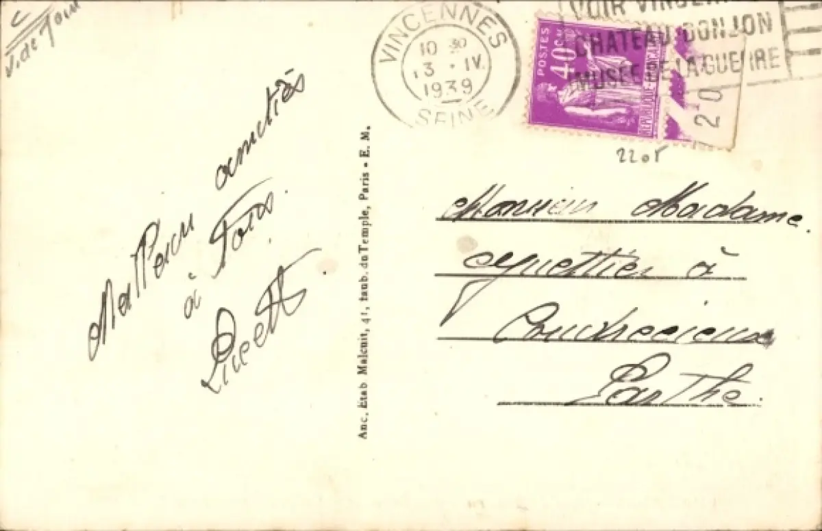 Zustand siehe Scan, gelaufen, 1939 - ca 14 cm X 9 cm