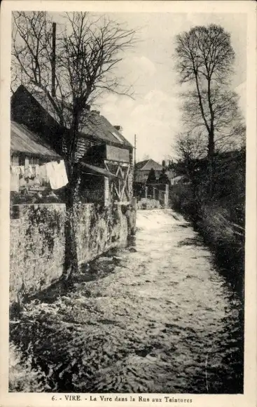 Ak Vire Calvados, La Vire dans la Rue aux Teintures