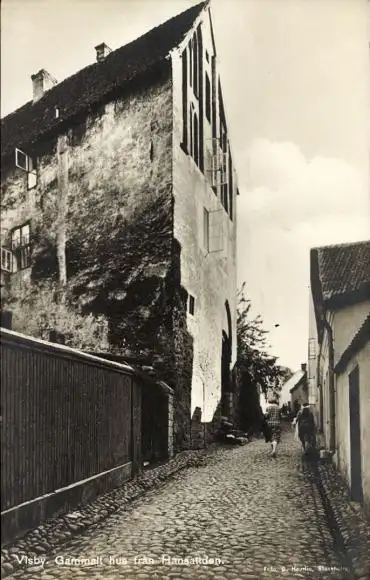 Ak Visby Wisby Schweden, Altes Haus, Straßenpartie