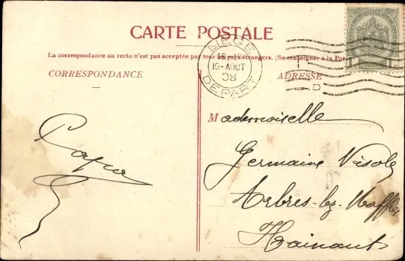 Zustand, siehe Scan, gelaufen, 1908 - ca 14 cm X 9 cm