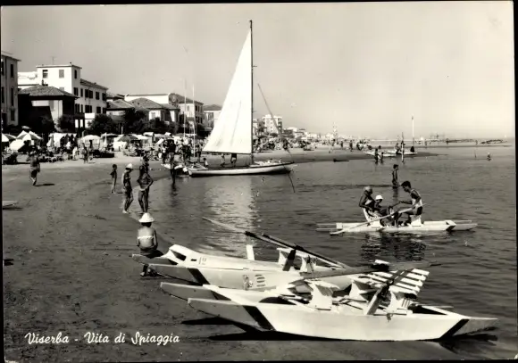 Ak Viserba Emilia-Romagna Italien, Vita di Spiaggia, Strandszene, Boote