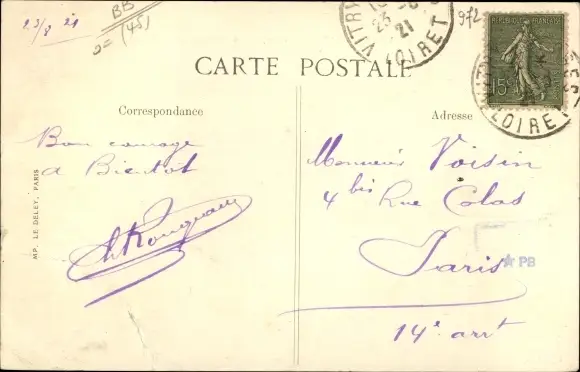gelaufen 1921, Knickspuren, sonst guter Zustand