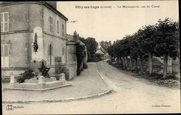 Ak Vitry aux Loges Loiret, Le Monument, Rue du Canal
