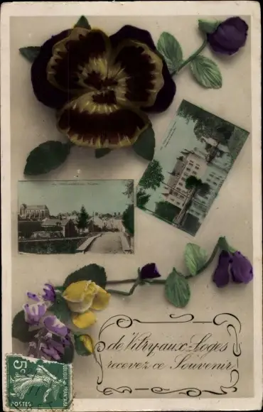 Ak Vitry aux Loges Loiret, Pensées et différentes Vues de la Ville