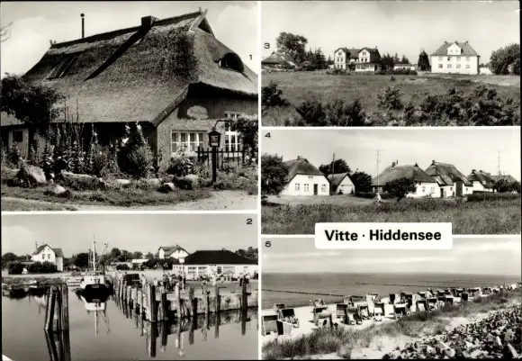 Ak Vitte Insel Hiddensee, Blaue Scheune, Hafen, Fischerhäuser, Strand