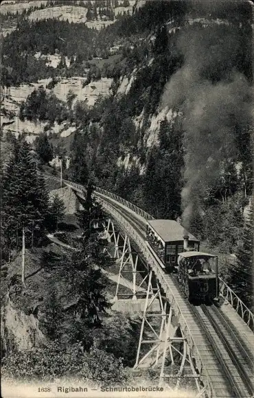 Ak Vitznau Kanton Luzern, Rigibahn, Schnurtobelbrücke