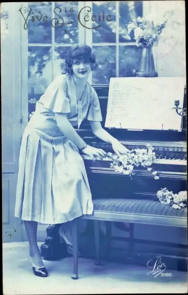 Ak Vive Sainte Cecile, Frau am Klavier, Blumen, Noten