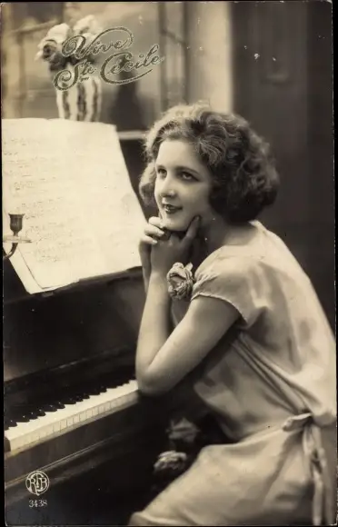 Ak Vive Sainte Cecile, Frau am Klavier, Noten, Musikunterricht
