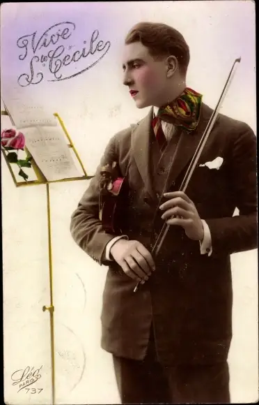 Ak Vive Sainte Cecile, Mann mit Geige, Notenständer