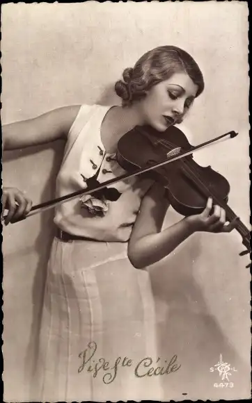 Ak Vive Ste Cécile, Frau mit Violine