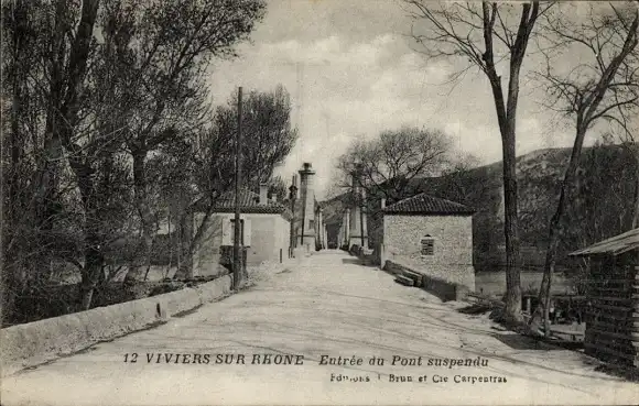 Ak Viviers sur Rhone Ardèche, Eingang zur Hängebrücke