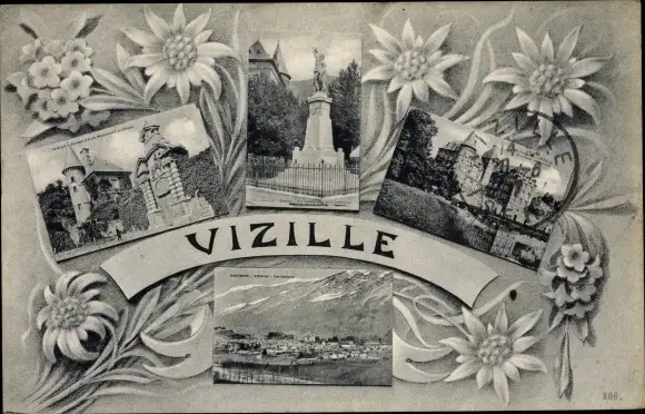 Ak Vizille Isere, Vue générale, monument, chateau, Edelweiß