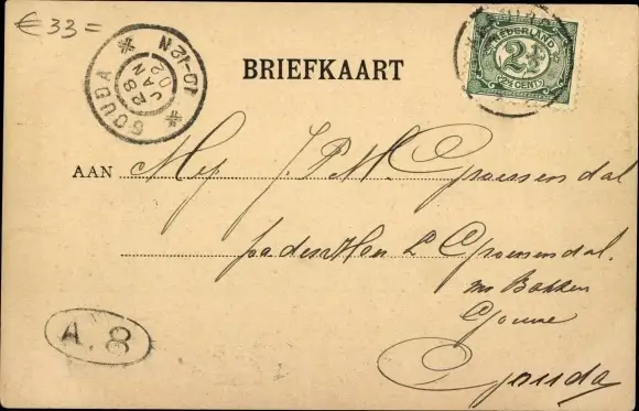 Zustand, siehe Scan, gelaufen, 1902 - ca 14 cm X 9 cm