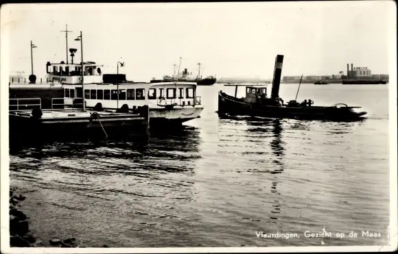 Ak Vlaardingen Südholland, Maas Partie, Dampfer am Anleger