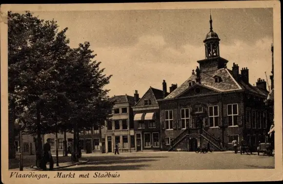 Ak Vlaardingen Südholland, Markt met Stadhuis