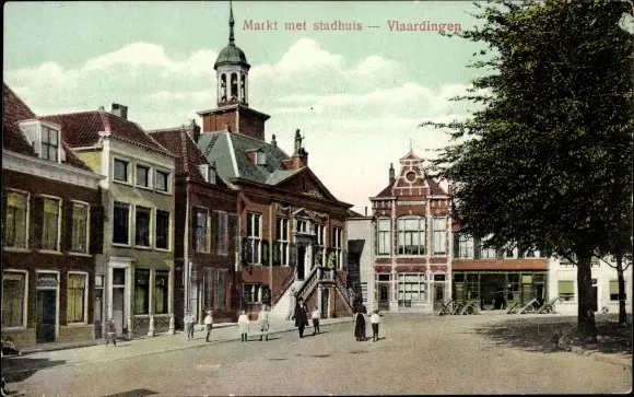 Ak Vlaardingen Südholland, Markt met stadhuis