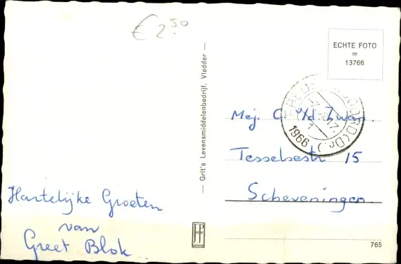 gelaufen 1966, Briefmarke entfernt, sonst guter Zustand