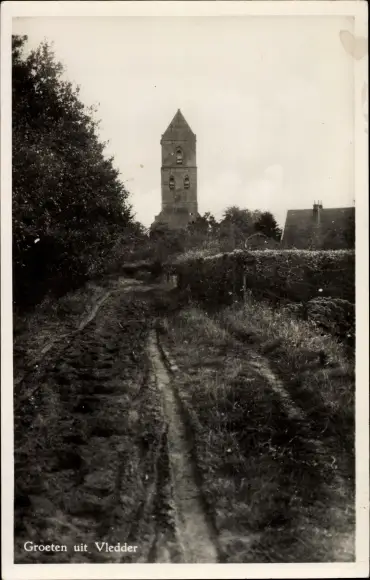 Ak Vledder Drenthe, Wegepartie zur Kirche