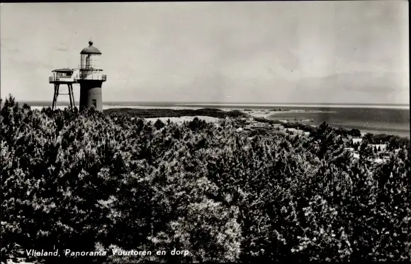 Ak Vlieland Friesland Niederlande, Panorama Vuurtoren en dorp
