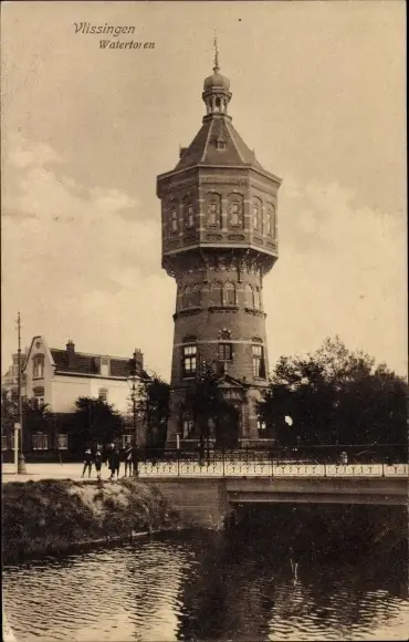 Ak Vlissingen Zeeland Niederlande, Watertoren, Wasserturm, Brücke
