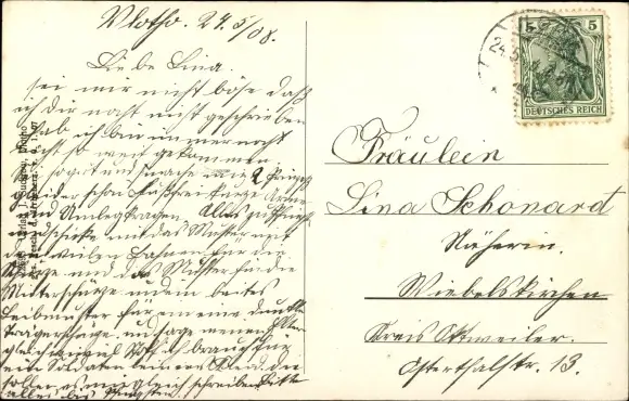 Zustand, siehe Scan, gelaufen, 1908 - ca 14 cm X 9 cm