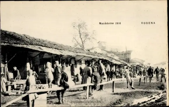 Ak Vodena Mazedonien, Straßenpartie, Geschäfte