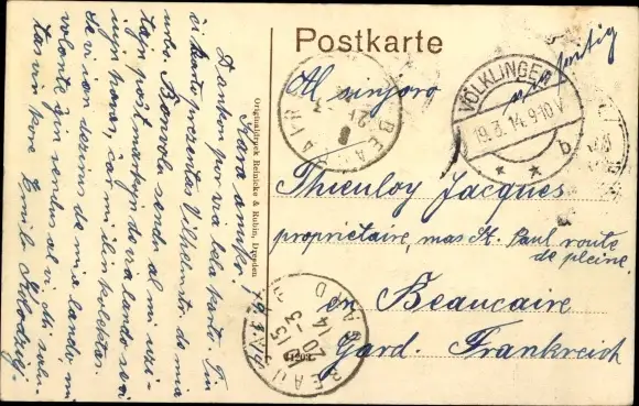 Zustand, siehe Scan, gelaufen, 1914 - ca 14 cm X 9 cm