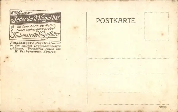 Ak Vogel, Fink, Reklame, Finkenstedt's Vogelfutter, Lehrte