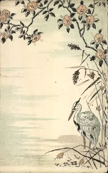 Ak Vogel im Wasser, Blühender Baum