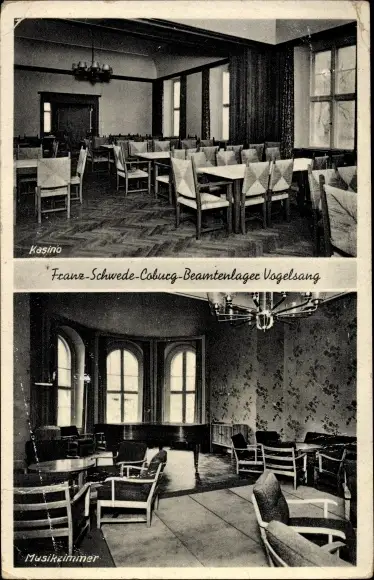 Ak Vogelsang Warsin Vorpommern, Franz Schwede Coburg Beamtenlager, Kasino, Musikzimmer
