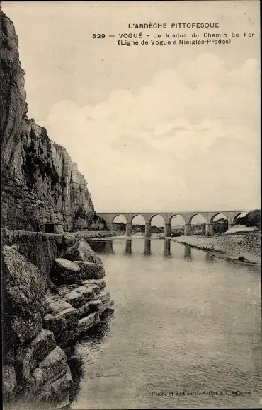 Ak Vogué Ardèche, Le Viaduc du Chemin de Fer