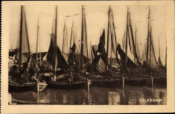 Ak Volendam Nordholland Niederlande, Fischerboote im Hafen, Segelboote