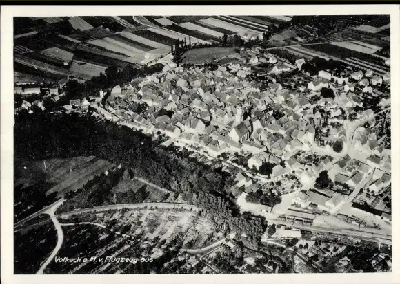 Ak Volkach am Main Unterfranken, Fliegeraufnahme